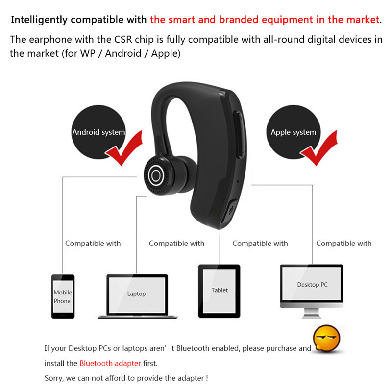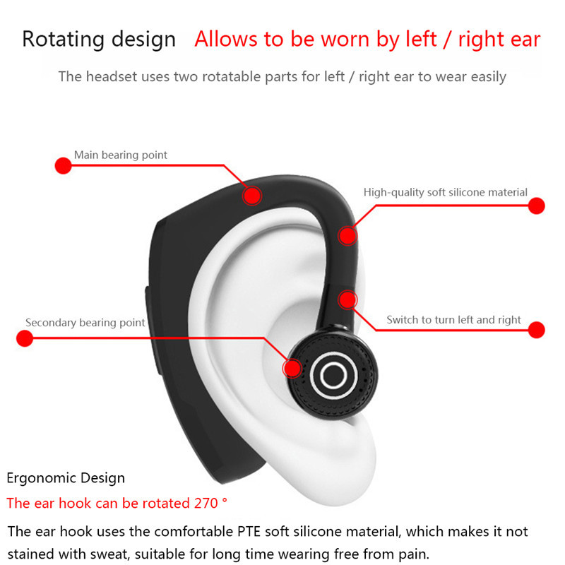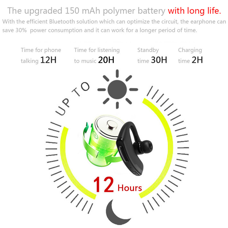 Bluetooth Headset Handsfree Wireless Earpiece Noise Reduction Earbud With Mic